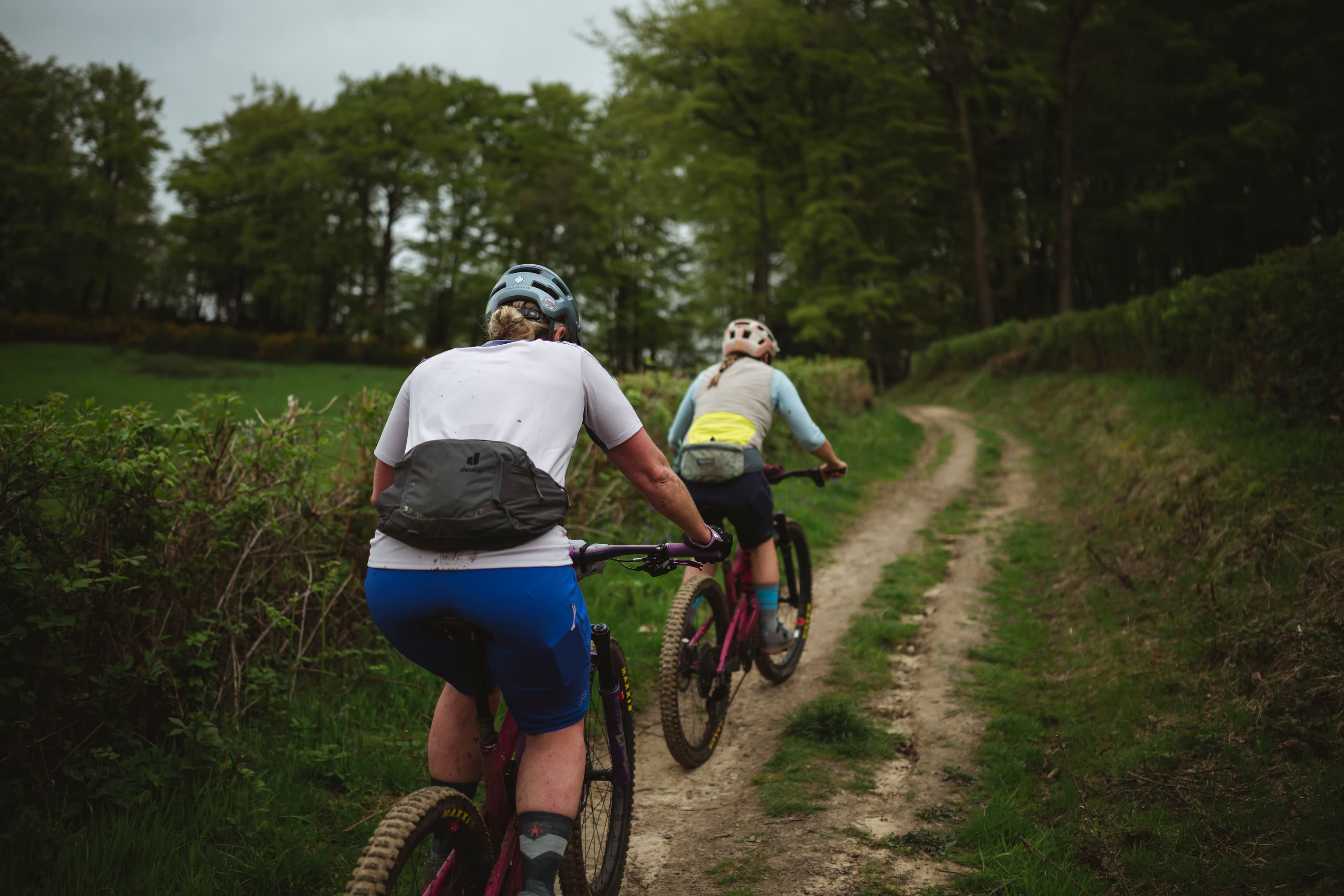 Julia is riding blind, has no idea how far we have to go and what’s to come. I know these hills and know we have one final big climb onto the North Downs before cruising on down to Guildford. I know this last climb will be worth it, the secret single track weaves through wild garlic and woodlands scattered with bluebells.